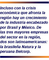 Asimismo, de las tres mayores empresas del sector en la región, dos son latinoamericanas: la brasileña Natura y la peruana Belcorp. Ambas, junto con la norteamericana Avon, dominan un sector que, según estimaciones de la industria, se ha incrementado un 314% en la última década, de acuerdo con información publicada por la Universidad de Pennsylvania.