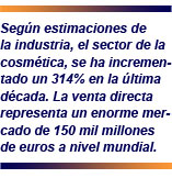 La venta directa está representando un enorme mercado que supone más de 150.000 millones de euros a nivel mundial. De ese total, Norte América y América Latina poseen un 20% del total. Asia Pacífico supone un 44% y Europa un 16%.