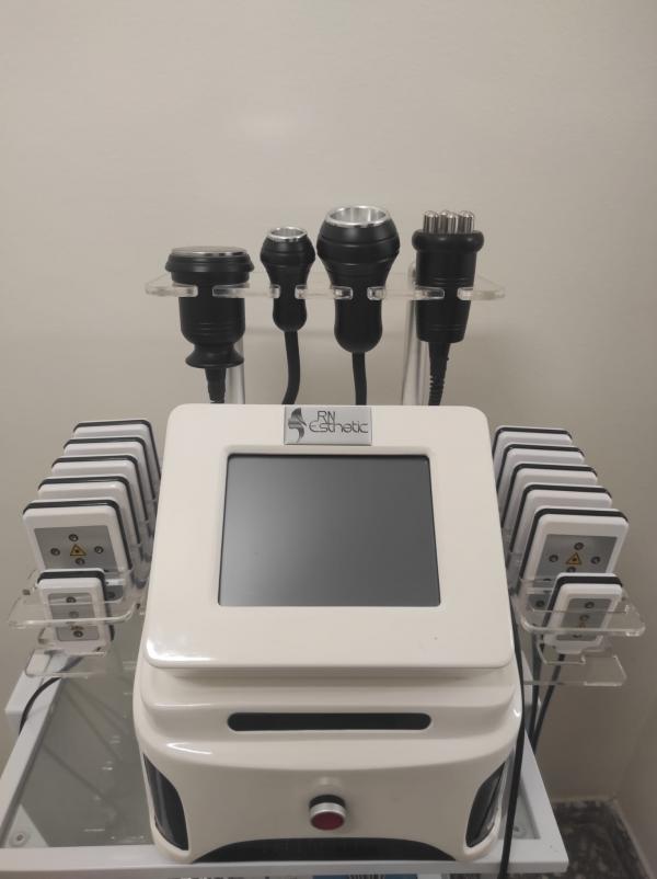 Cavitación, radiofrecuencia, lipolaser 12 placas, vacumterapia 2 tamaños, manual de instrucciones en castellano. Funciona perfectamente, solo hay una placa de lipolaser a la que hay que soldar los cables. Costó 1800€. No se envía.