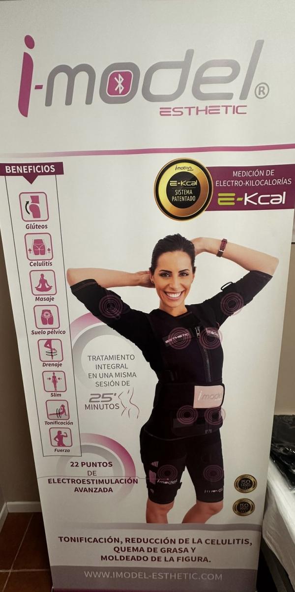 Equipo completo de electro estimulación EMS, 3 trajes de tallas S, M y L. Ropa de cada talla, burro para colgar los trajes, tablets…….