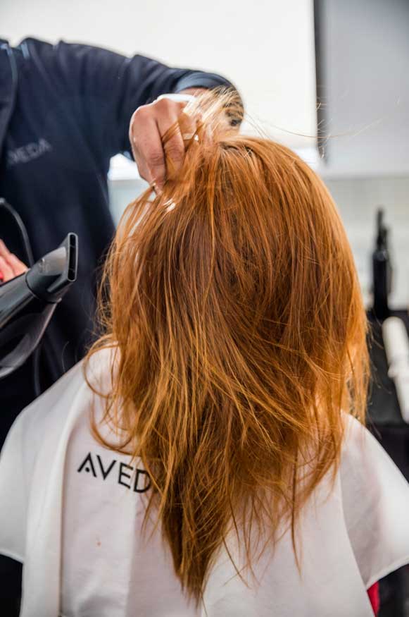 La directora creativa de Antonieta Beenders preparó unos peinados diferentes para la presentación de la colección Pre-Fall, a principios de este año, con el nuevo champú en seco Shampooing sec Aveda Shampure Dry Shampooe