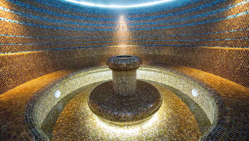 En Constantinopla, nombre antiguo de la actual ciudad de Estambul en Turquía, nació el hammam (baño en árabe). Descendiente directo de las termas romanas se adaptó a la doctrina del Corán y a la cultura oriental. En comparación con la monumentalidad de las termas el baño islámico es urbano y su arquitectura más discreta, debido, sobre todo, a una concepción de la vida y la religión más introspectiva y a la evitación de la ostentación en todas sus construcciones. Es por este motivo por el que las grandes salas termales se sustituyen por un ambiente más sutil y sensual.