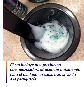 El set incluye dos productos que, mezclados, ofrecen un tratamiento para el cuidado en casa, tras la visita a la peluquería. Por un lado, el Microsphere Emerald, desarrollado con vitamina E y aceites esenciales enriquecidos, en forma de microesferas; por el otro, el Miracle Mask a base de una alta concentración de aminoácidos.