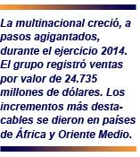 La multinacional creció, a pasos agigantados, durante el ejercicio 2014. El grupo registró ventas por valor de 24.735 millones de dólares, lo que representó un aumento del 1,8% comparado con las ventas del año 2013. Las cifras no podían ser más halagüeñas, con un beneficio del 66%, hasta los 4.910 millones de dólares. La venta de Galderma a Nestlé habría influido en dichos resultados.