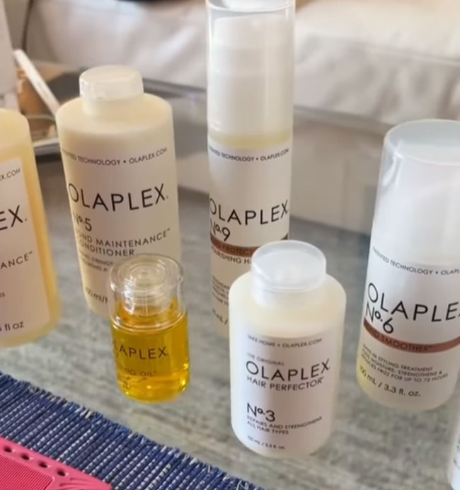 Primero, Plaza preparó su cabello limpiándolo con Olaplex No. 4 Bond Maintenance Shampoo y Olaplex No. 5 Bond Maintenance Conditioner.