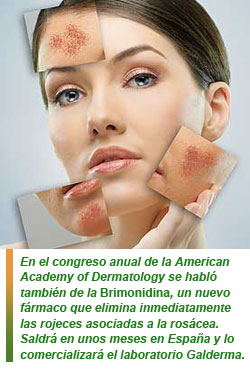 ➔ Se habló de la Brimonidina, un nuevo fármaco que elimina inmediatamente las rojeces asociadas a la rosácea. Saldrá en unos meses en España y lo comercializará el laboratorio Galderma.