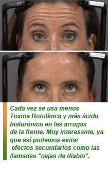 ➔ Cada vez se usa menos Toxina Botulínica y más ácido hialurónico en las arrugas de la frente. Muy interesante, ya que así podemos evitar efectos secundarios como las llamadas "cejas de diablo".