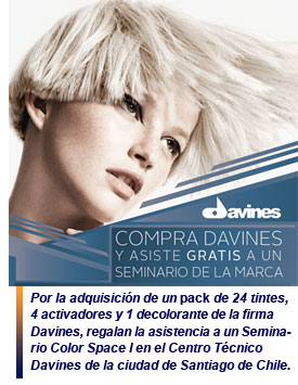 Casa Pichara ofrece una promoción de compra exclusiva para sus clientes profesionales: por la adquisición de un pack de 24 tintes, 4 activadores y 1 decolorante de la firma Davines, regalan la asistencia a un Seminario Color Space I en el Centro Técnico Davines de la ciudad de Santiago de Chile.