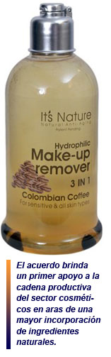 Finalmente, César Augusto Peñaloza, gerente del Plan de Transformación Productiva, añadió que gracias a este Acuerdo de Cooperación, la cadena productiva del sector de cosméticos, con énfasis en ingredientes naturales, incrementará su capacidad para cumplir con las normas de calidad internacionales. En su opinión, esta iniciativa complementa la línea de trabajo del PTP de facilitar la inserción de las empresas nacionales de cosméticos en mercados extranjeros. En la actualidad, el sector de cosméticos supone el 4% del PIB colombiano. Este país se posiciona como el tercer mercado más importante de Latinoamérica para la industria cosmética, según la Asociación de Industriales de Colombia (ANDI).